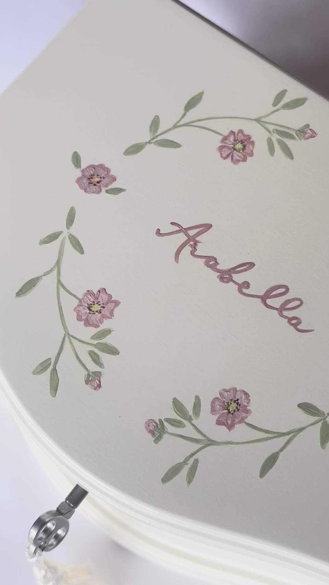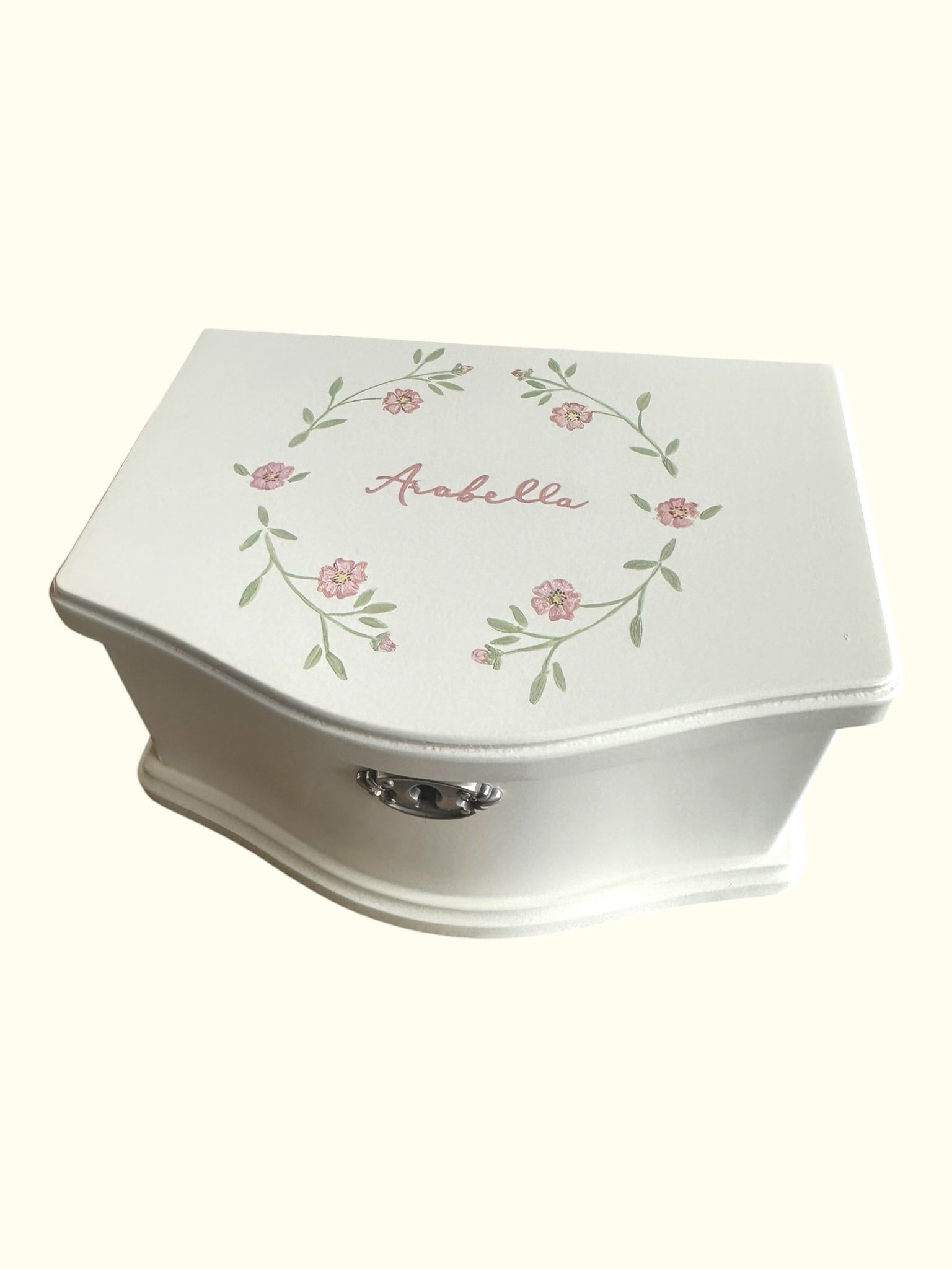Beautiful and unique hand painted wooden jewellery boxes with a windup mechanism to make the ballerina dance when the box is opened.